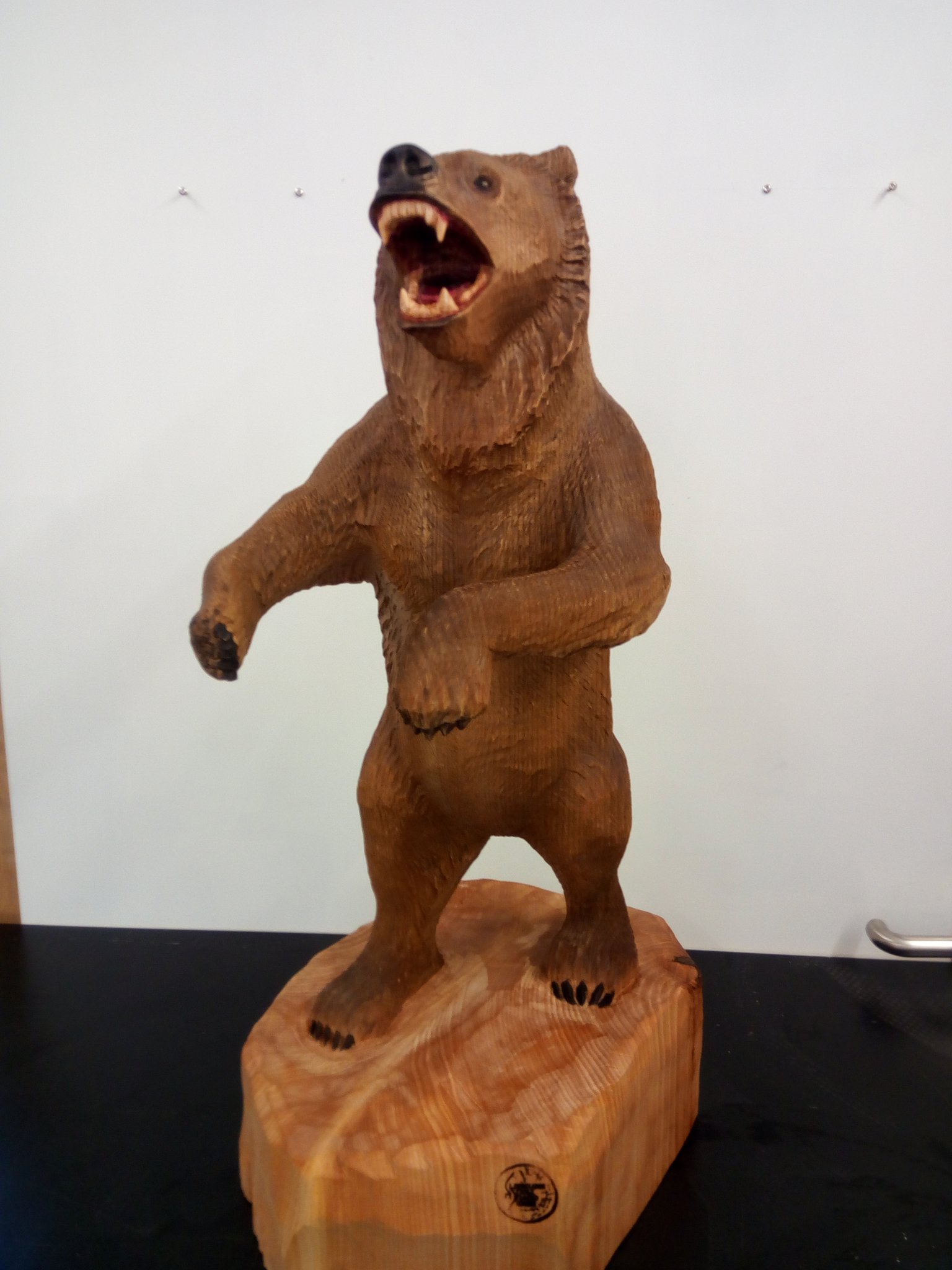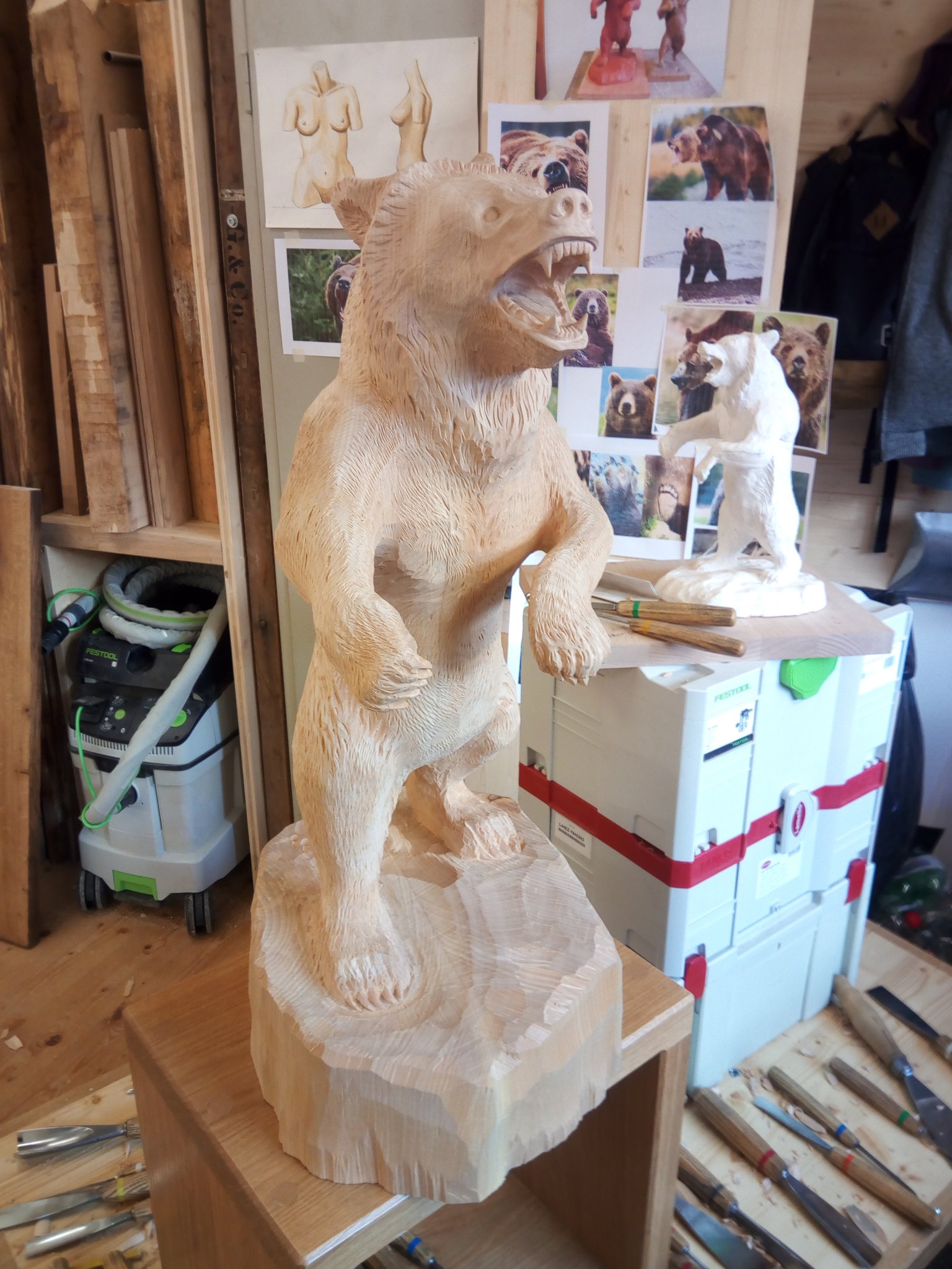 Naturalistischer Grizzlybär, nach Eigenentwurf geschnitzt.