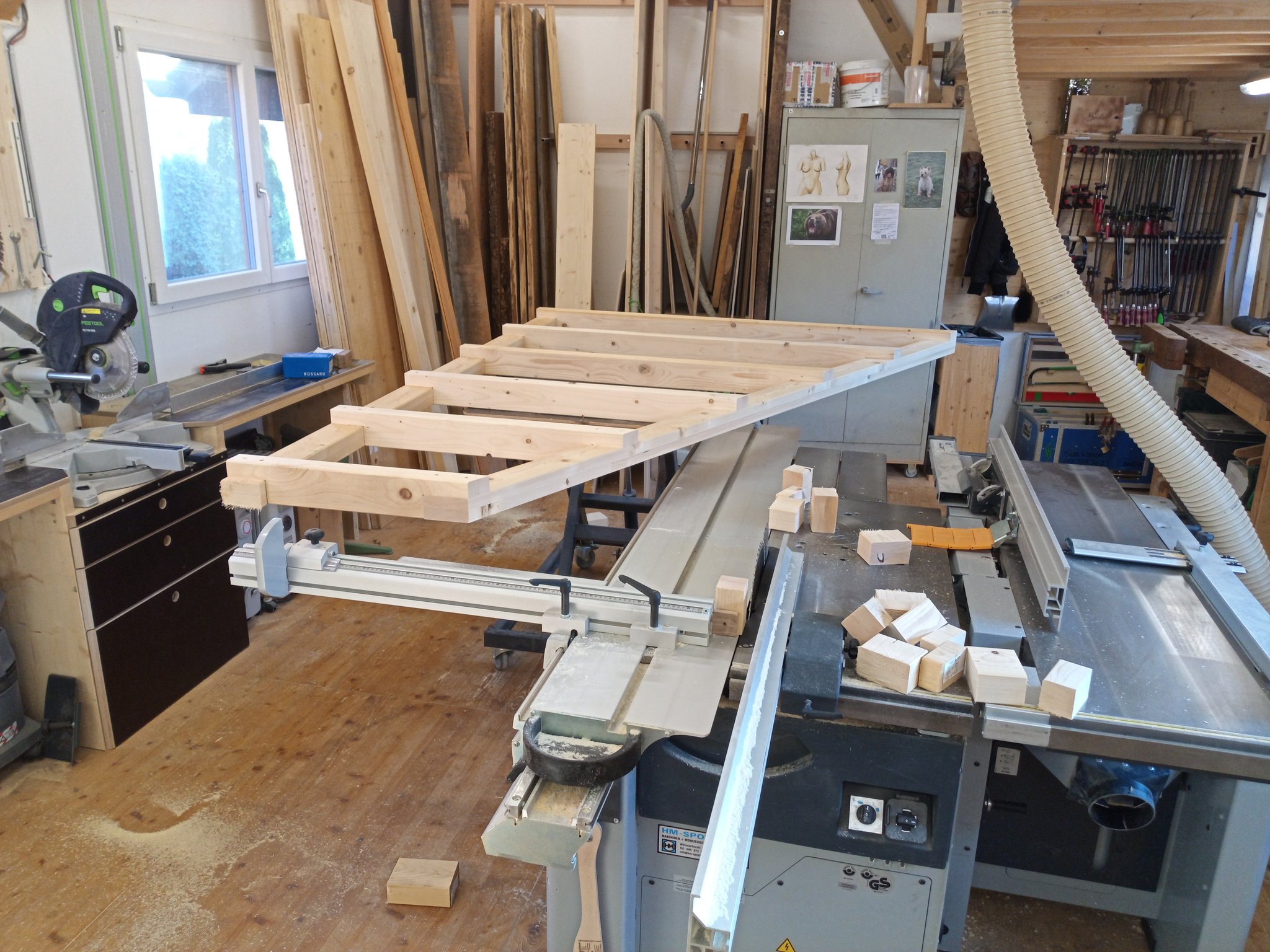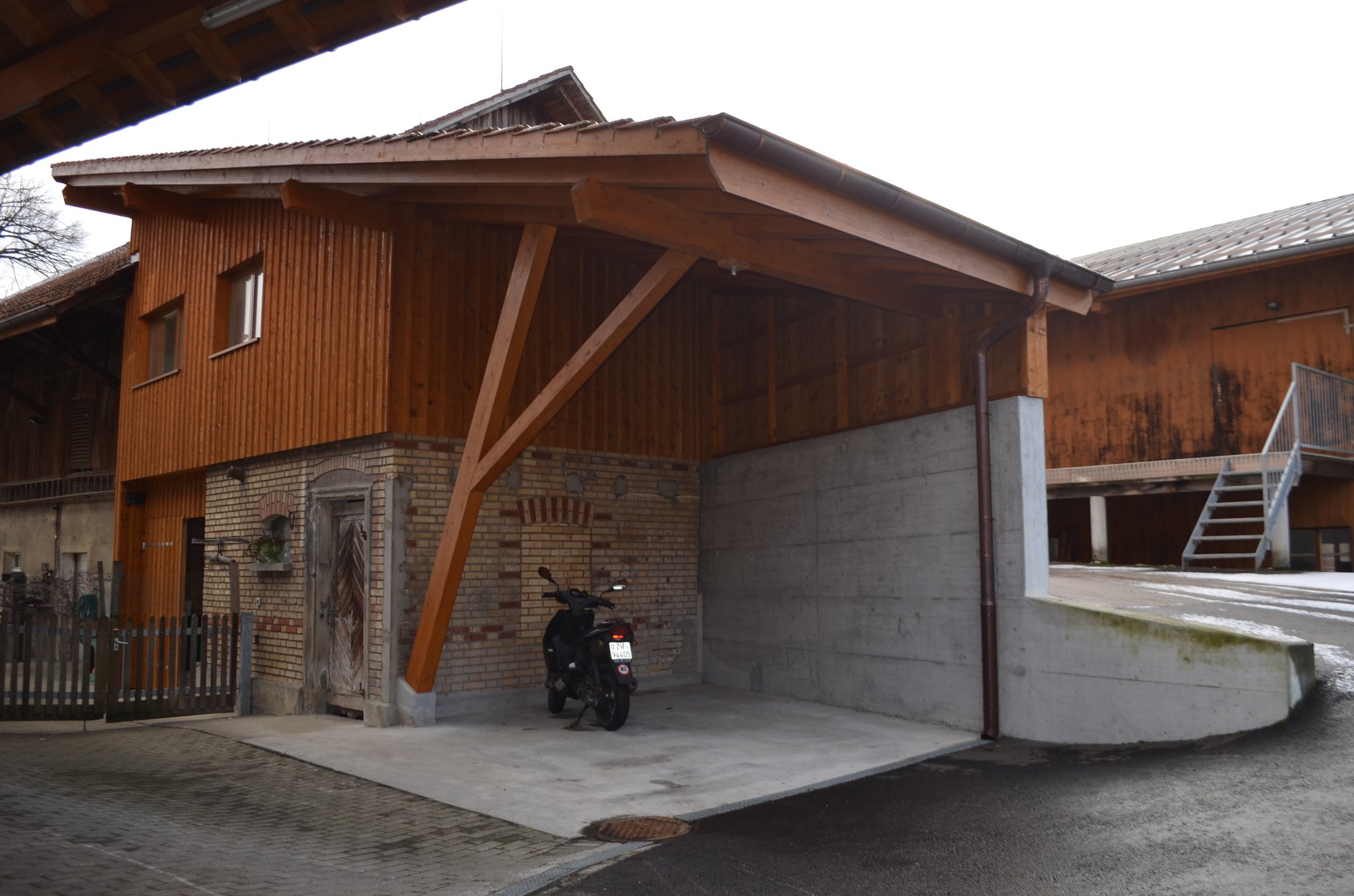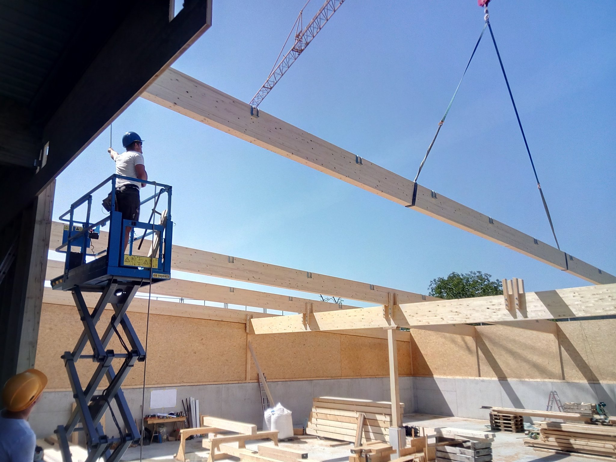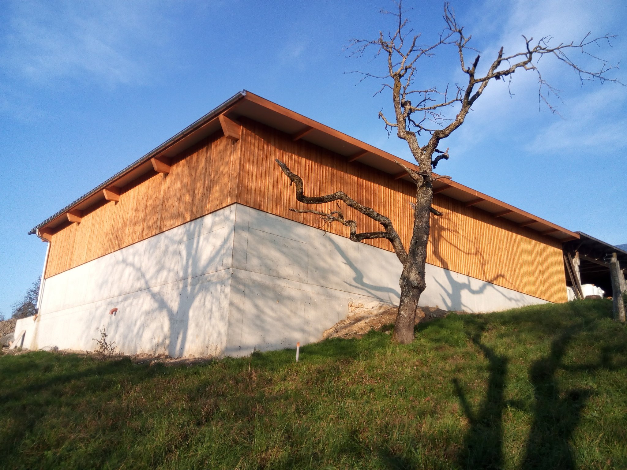 Ich erarbeitete in Zusammenarbeit mit dem Bauherrn einen Entwurf für den Neubau aus und setzte ihn danach um. Der alte und morsche Boden wurde durch Hohlkastenelemente ersetzt. Die Wände wurden in Elementbauweise geplant und erstellt. Danach folgte der Dachstuhl, welchen wir konventionell aufgerichtet haben. Dank einer guten Planung und Arbeitsvorbereitung verging vom Abbruch des alten Obergeschoss übers Erstellen der neuen Wandelemente bis hin zum Aufrichten des Dachstuhls und Verlegen des Unterdachs nur gerade vier Tage.