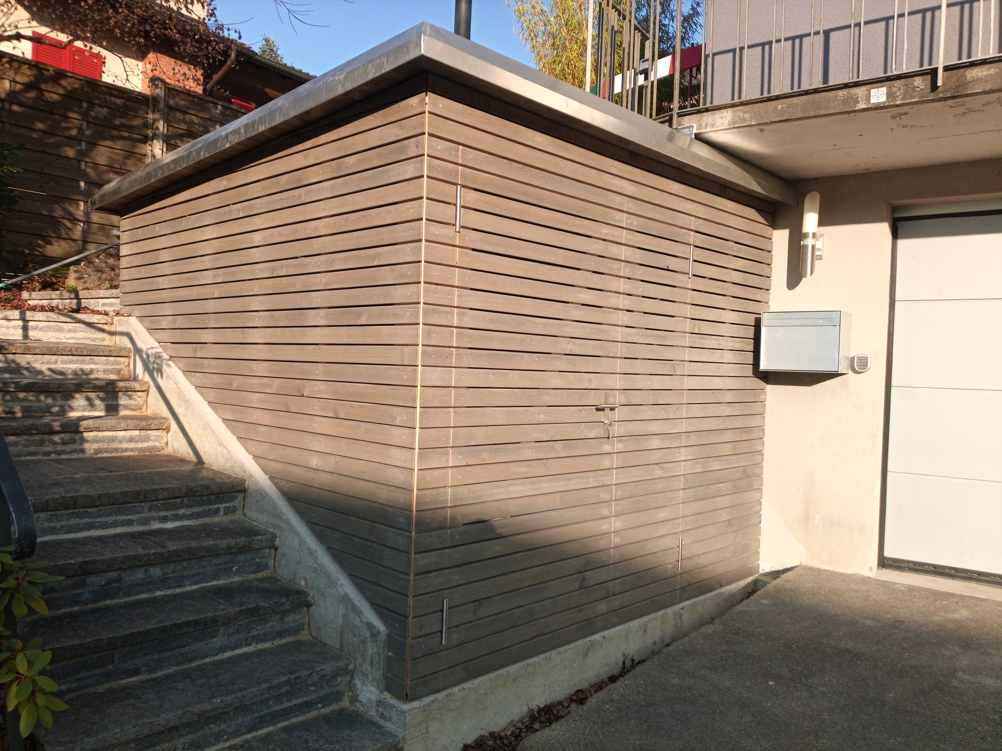 Der alte Holzaufbau eines Lagergebäudes war baufällig und Einsturz gefährdet. Die Grundmauern sowie das Untergeschoss waren intakt und wurden noch gebraucht.